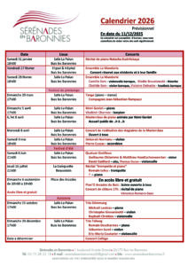 Ce programme est diffusé à titre indicatif, certaines dates sont à préciser. N’hésitez pas à revenir nous rendre visite plus tard.
