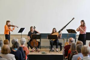 L’Ensemble La Mandorle, , vous invite ce soir à un concert où chaque note semble naître d’un autre temps. Leurs doigts effleurent les — Violoncelle baroque, Violon baroque , Théorbe et Hautbois baroque — pour en tirer des sons purs, vibrants, chargés d’histoire.